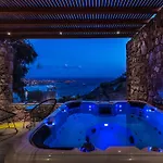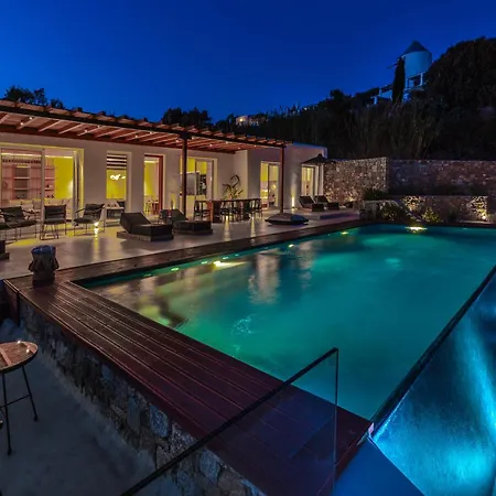 Elit Villa Psarou tilbyder en indkvartering inden for 10 minutter i bil fra Mykonos lufthavn. Der er en balkon, et fladskærms TV med satellitkanaler og klimaanlæg soveværelser med 5.
